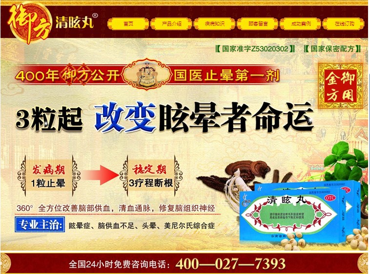 最近,接到廣大消費(fèi)者的咨詢,詢問我公司是否生產(chǎn)“御方清眩丸”該產(chǎn)品?,F(xiàn)向廣大支持騰藥的消費(fèi)者申明,我公司只生產(chǎn)清眩丸,功能主治是治療外感風(fēng)熱上攻所致的頭痛眩暈。而非廣告上所宣傳的“主治:眩暈、腦供血不足、頭暈、美尼爾氏綜合癥”。